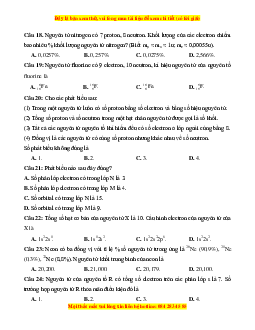 Câu 18. Nguyên tử nitrogen có 7 proton, 8 neutron. Khối lượng của các electron chiếm