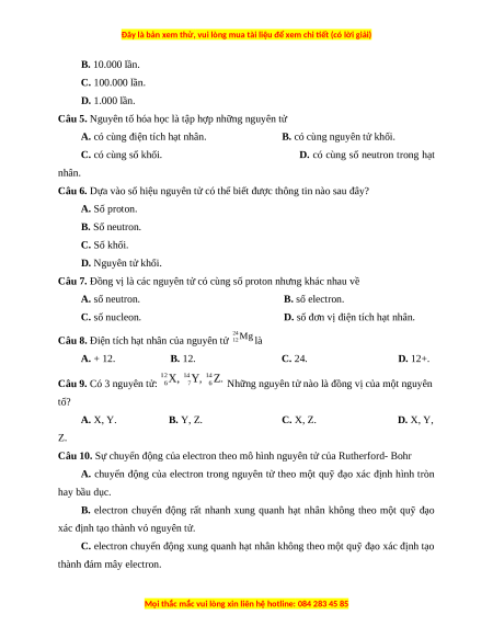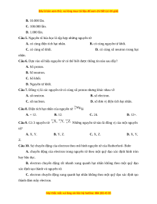 Câu 4. Đường kính của nguyên tử gấp đường kính của hạt nhân A. 100 lần.
