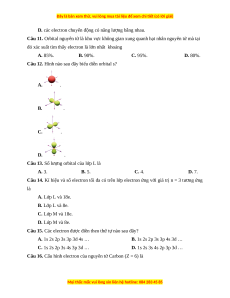 Câu 11. Orbital nguyên tử là khu vực không gian xung quanh hạt nhân nguyên tử mà tại