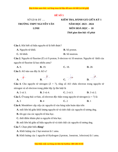 - Tailieugiaovien.com.vn giới thiệu bộ 8 đề thi giữa kì 1 có đầy đủ ma trận và lời giải chi tiết Hóa học 10 Cánh diều mới nhất năm 2023 - 2024 nhằm giúp Giáo viên có thêm tài liệu tham khảo ra đề thi Hóa học lớp 10.