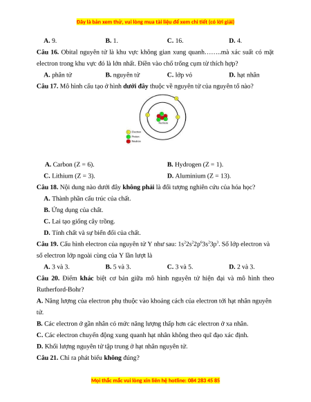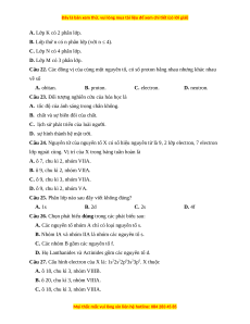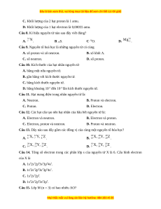 Câu 16. Obital nguyên tử là khu vực không gian xung quanh……..mà xác suất có mặt