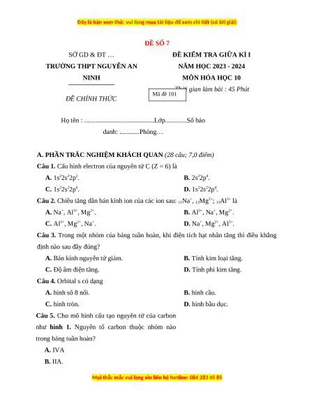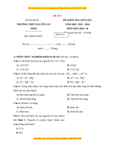 TRƯỜNG THPT NGUYỄN AN NĂM HỌC 2023 - 2024 NINH MÔN HÓA HỌC 10