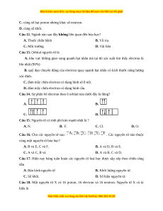 Câu 11. Các đồng vị của cùng một nguyên tố hoá học thì chúng có
