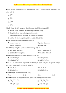 Câu 12. Các lớp electron được đánh số từ trong ra ngoài bằng các số nguyên dương: