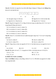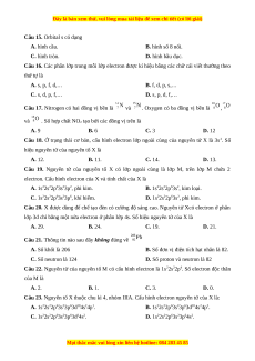 Câu 23. Nguyên tố X thuộc chu kì 4, nhóm IIIA. Cấu hình electron nguyên tử của X là: