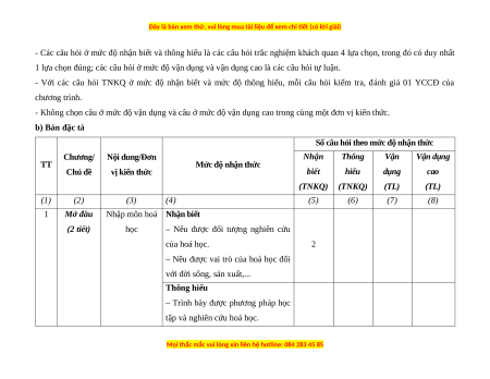 - Không chọn câu ở mức độ vận dụng và câu ở mức độ vận dụng cao trong cùng một đơn vị kiến thức. b) Bản đặc tả