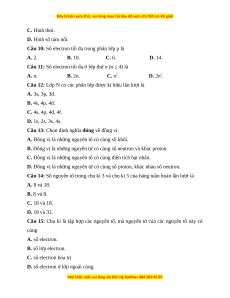 Câu 10: Số electron tối đa trong phân lớp p là A. 2. B. 10. C. 6. D. 14.