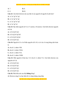 Câu 23: Hạt nhân nguyên tử X có 17 proton, 18 neutron. Cấu hình electron nguyên