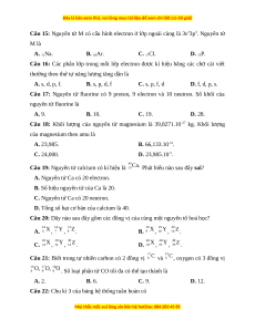 Câu 20: Dãy nào sau đây gồm các đồng vị của cùng một nguyên tố hoá học?