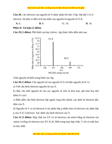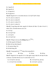Câu 30 (1 điểm): Cho nguyên tử của nguyên tố X số hiệu nguyên tử là 12.
