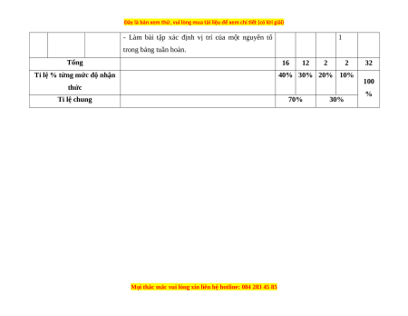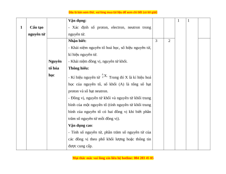 - Khái niệm đồng vị, nguyên tử khối. tố hóa Thông hiểu: học - Kí hiệu nguyên tử