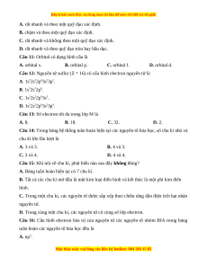 Câu 13: Số electron tối đa trong lớp M là A. 8. B. 18. C. 32. D. 2.