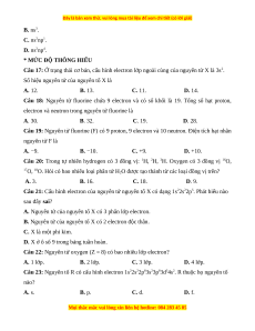 Câu 18: Nguyên tử fluorine chứa 9 electron và có số khối là 19. Tổng số hạt proton,