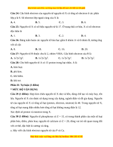 Câu 28: Cho biết nguyên tố A có 15 proton trong hạt nhân. A là