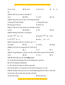 Câu 5: Chất nào sau đây thuộc loại chất điện li mạnh? A. SO2. B. Ba(OH)2. C. HF. D. H2S.