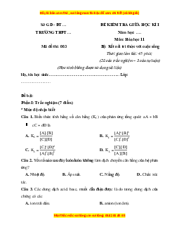 ĐỀ KIỂM TRA GIỮA HỌC KÌ I TRƯỜNG THPT … Năm học: …. Môn: Hóa học 11 Mã đề thi: 003