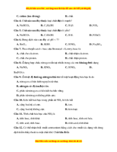 Câu 8. Ở dạng hợp chất, nitrogen tồn tại nhiều trong các mỏ khoáng dưới dạng A. NaNO3. B. KNO3. C. HNO3. D. Ba(NO3)2.