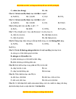 Câu 20. Theo thuyết Bronsted – Lowry chất nào sau đây lưỡng tính? A. Mg2+. B. NH − 3. C. HCO3 . D. 2 SO . 3