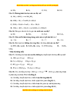 Câu 13. Phương trình hóa học nào sau đây sai? A. NH HNO NH NO . 3 3 4 3 o B. t 4NH 5O 4N O 6H O. 3 2 2 2 o C. t 2NH 3CuO N 3Cu 3H O. 3 2 2