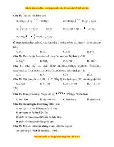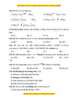 Câu 19. Cho các cân bằng sau: (1) H2(g) + I2(g) 2HI(g) (4) 2HI(g) H2(g) + I2(g) 1 1 (2) H2(g) + I2(g) HI(g) (5) H2(g) + I2(s) 2HI(g) 2 2 1 1 (3) HI(g) H2(g) + I2(g) 2 2