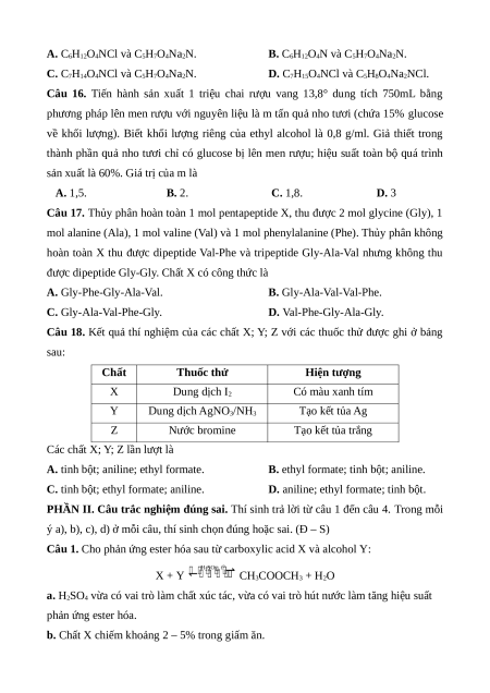câu 18. Mỗi câu hỏi thí sinh chỉ chọn một phương án.