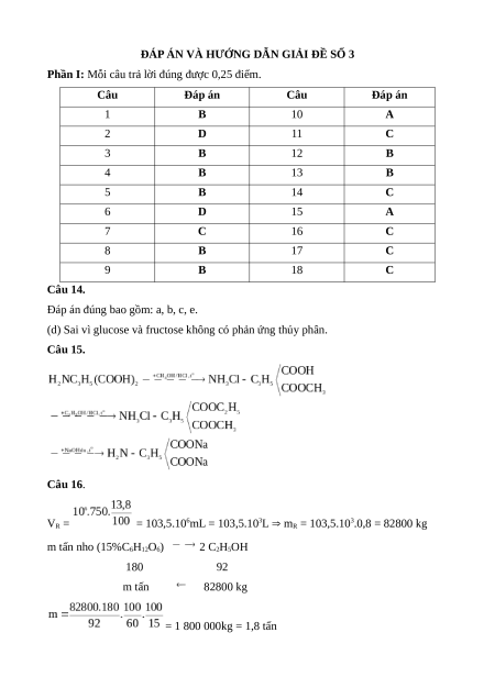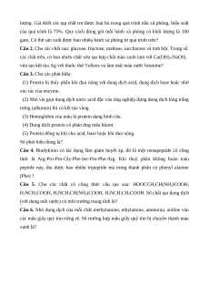 Câu 13. Peptide bị thủy phân hoàn toàn nhờ xúc tác enzyme tạo thành các A. alcohol. B. α–amino acid. C. amine. D. anđehit.