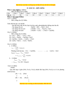 Phương trình hóa học: CO2 + Ca(OH)2 CaCO3 + H2O Ta có b. (1 điểm) Câu 4: (1 điểm) (mol)