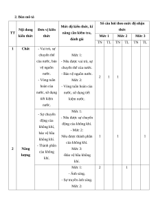 năng cần kiểm tra, kiến thức thức Mức 1 Mức 2 Mức 3 đánh giá TN TL TN TL TN TL 1 Chất - Vai trò, sự chuyển thể Mức 1: