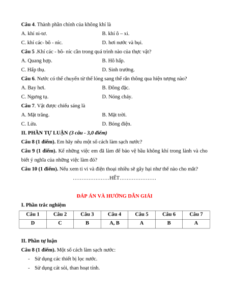 (7 câu trắc nghiệm – 3 câu tự luận)