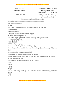 ĐỀ KIỂM TRA GIỮA HKI TRƯỜNG THCS … Năm học 2021 - 2022