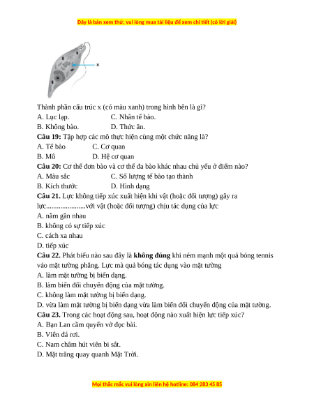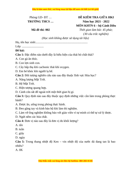 MÔN KHTN 6 – bộ Cánh Diều Mã đề thi: 002