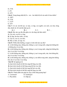 Câu 5: Trong thang nhiệt độ Ken – vin nhiệt độ của nước đá đang tan là bao nhiêu? A. 0K