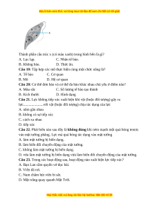 Câu 20: Cơ thể đơn bào và cơ thể đa bào khác nhau chủ yếu ở điểm nào? A. Màu sắc