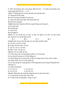 Câu 17: Trong các sinh vật dưới đây, đâu là sinh vật đơn bào? A. San hô B. Sứa C. Mực D. Trùng biến hình