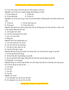 Câu 20: Loại tế bào nào trong cơ thể sau khi hình thành sẽ không phân chia thêm một lần nào nữa? A. Tế bào da C. Tế bào niêm mạc má B. Tế bào gan D. Tế bào thần kinh
