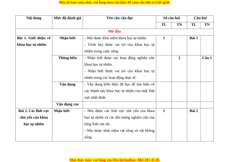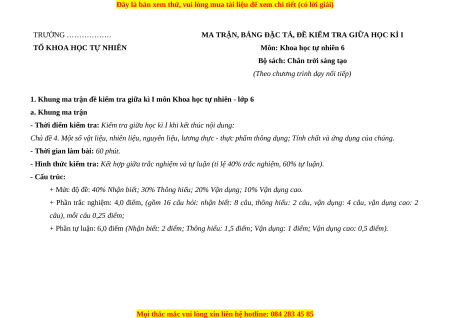 1. Khung ma trận đề kiểm tra giữa kì I môn Khoa học tự nhiên - lớp 6