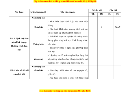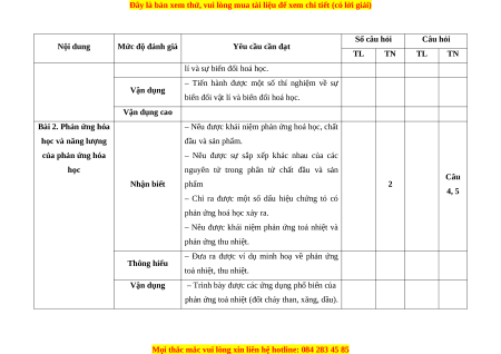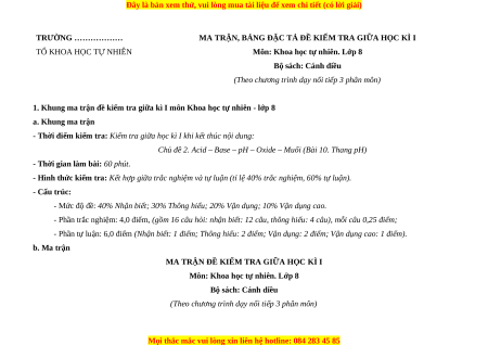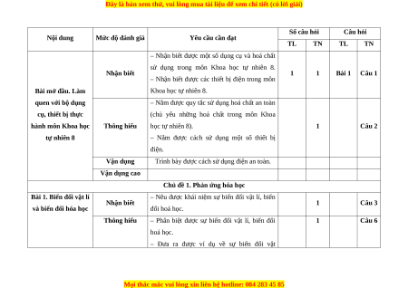1. Khung ma trận đề kiểm tra giữa kì I môn Khoa học tự nhiên - lớp 8 a. Khung ma trận