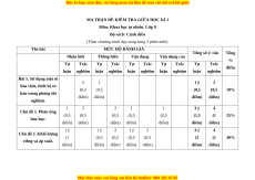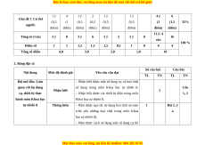 (Theo chương trình dạy song song 3 phân môn) Tên bài MỨC ĐỘ ĐÁNH GIÁ Tổng số ý/ câu Tổng Nhận biết Thông hiểu Vận dụng Vận dụng cao % Tự Trắc Tự Trắc Tự Trắc Tự Trắc Tự Trắc điểm luận nghiệm luận nghiệm luận nghiệm luận nghiệm luận nghiệm