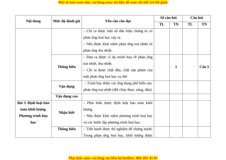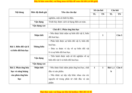 Chủ đề 1. Phản ứng (0,5 (0,5 (0,5 (0,5 (0,5 (1,5 (1 25% hóa học. điểm) điểm) điểm) điểm) điểm) điểm) điểm) 1 ý 1 ý 2 1 ý 2 3 ý 4