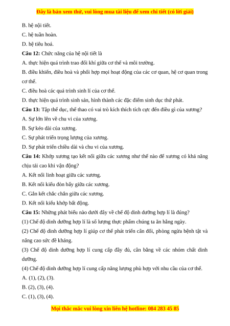 Câu 13: Tập thể dục, thể thao có vai trò kích thích tích cực đến điều gì của xương?