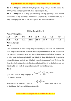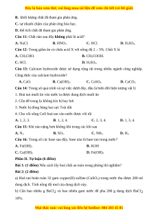 Bài 1: (1 điểm) Nêu cách lấy hoá chất an toàn trong phòng thí nghiệm? Bài 2: (2 điểm)