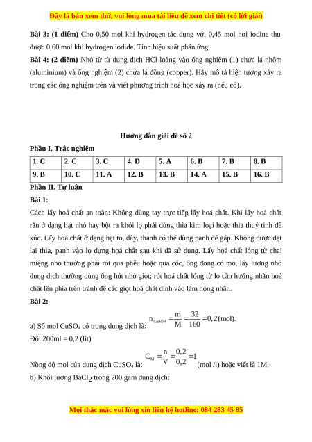 Phần I. Trắc nghiệm 1. C 2. C 3. C 4. D 5. A 6. B 7. B 8. B 9. B 10. C 11. A 12. B 13. B 14. A 15. B 16. B Phần II. Tự luận Bài 1: