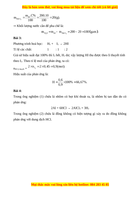 Bài 3: (1 điểm) Cho 0,50 mol khí hydrogen tác dụng với 0,45 mol hơi iodine thu