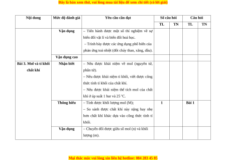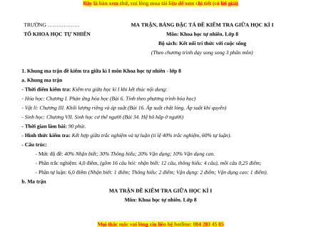 1. Khung ma trận đề kiểm tra giữa kì I môn Khoa học tự nhiên - lớp 8 a. Khung ma trận