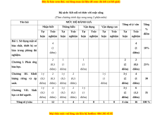 (Theo chương trình dạy song song 3 phân môn) Tên bài MỨC ĐỘ ĐÁNH GIÁ Tổng số ý/ câu Tổng Nhận biết Thông hiểu Vận dụng Vận dụng cao % Tự Trắc Tự Trắc Tự Trắc Tự Trắc Tự Trắc điểm luận nghiệm luận nghiệm luận nghiệm luận nghiệm luận nghiệm