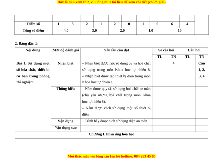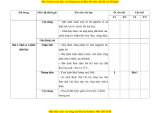 Điểm số 1 3 2 1 2 0 1 0 6 4 Tổng số điểm 4,0 3,0 2,0 1,0 10 2. Bảng đặc tả Nội dung Mức độ đánh giá Yêu cầu cần đạt Số câu hỏi Câu hỏi TL TN TL TN