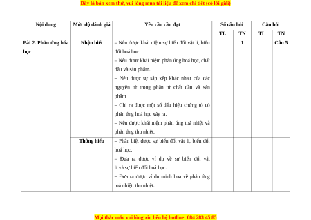 Chương I. Phản ứng (0,5 (1 (1 (2 (0,5 25% hóa học. điểm) điểm) điểm) điểm) điểm) Chương III. Khối 1 ý 2 1 ý 2 1 ý 3 ý 4