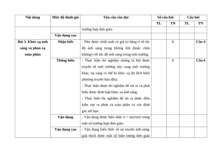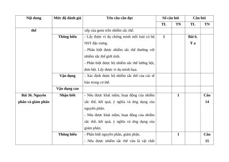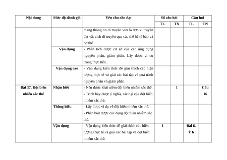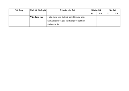 Làm được bài thuyết trình về một vấn đề khoa học. Vận dụng cao Nội dung Mức độ đánh giá Yêu cầu cần đạt Số câu hỏi Câu hỏi TL TN TL TN