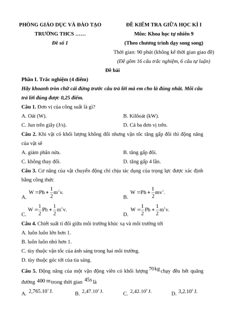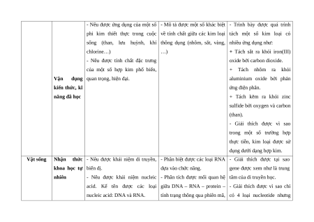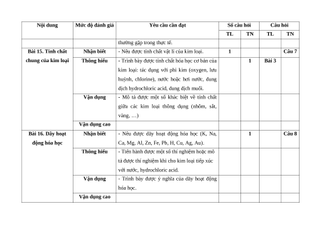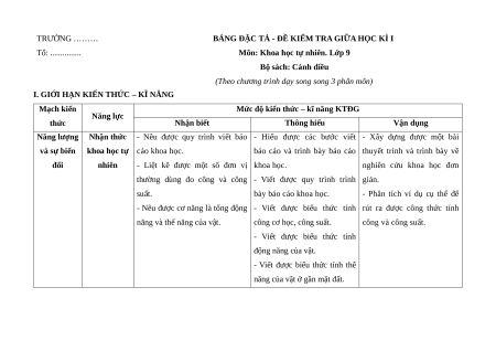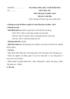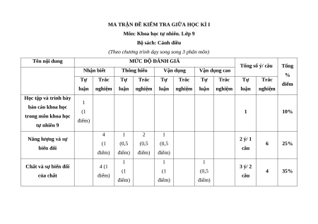 1. Khung ma trận đề kiểm tra giữa kì I môn Khoa học tự nhiên - lớp 9 a. Khung ma trận