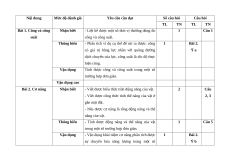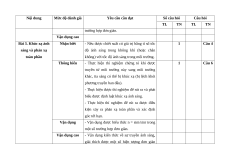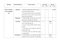 (Theo chương trình dạy song song 3 phân môn) Tên nội dung MỨC ĐỘ ĐÁNH GIÁ Tổng số ý/ câu Tổng Nhận biết Thông hiểu Vận dụng Vận dụng cao % Tự Trắc Tự Trắc Tự Trắc Tự Trắc Tự Trắc điểm luận nghiệm luận nghiệm luận nghiệm luận nghiệm luận nghiệm
